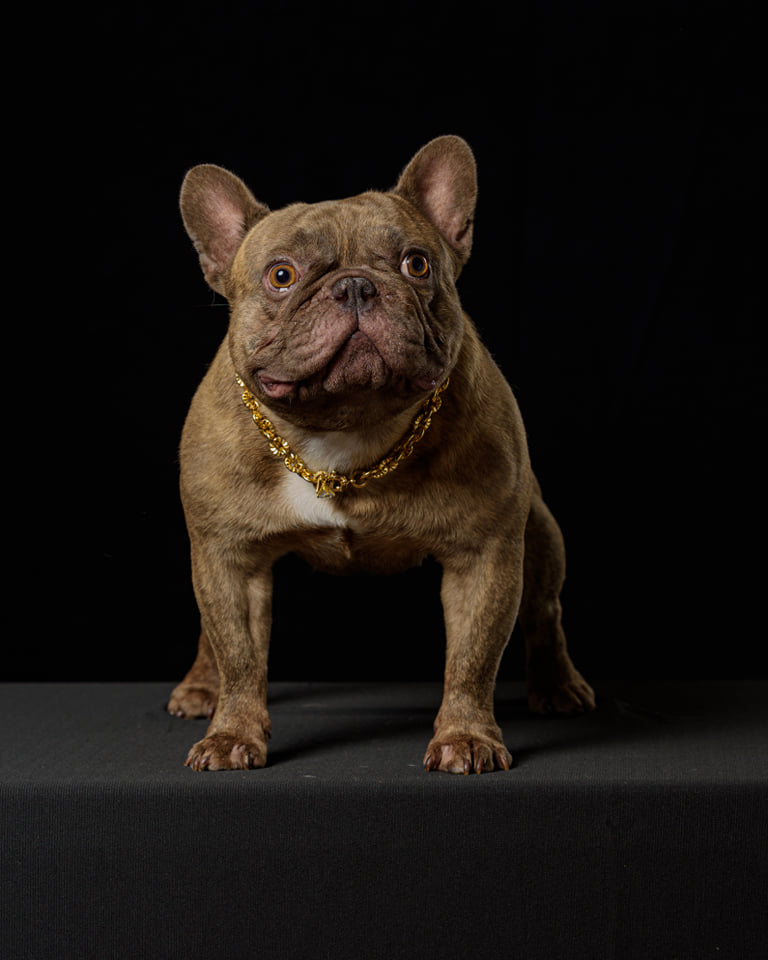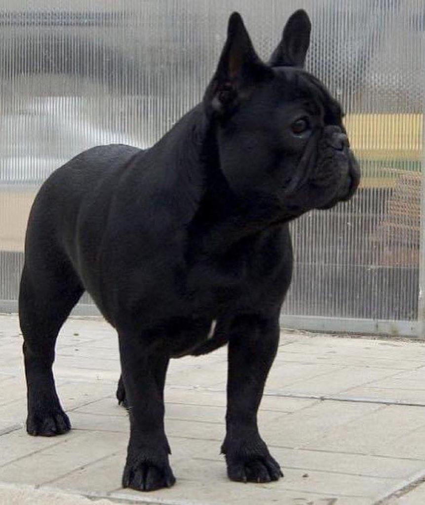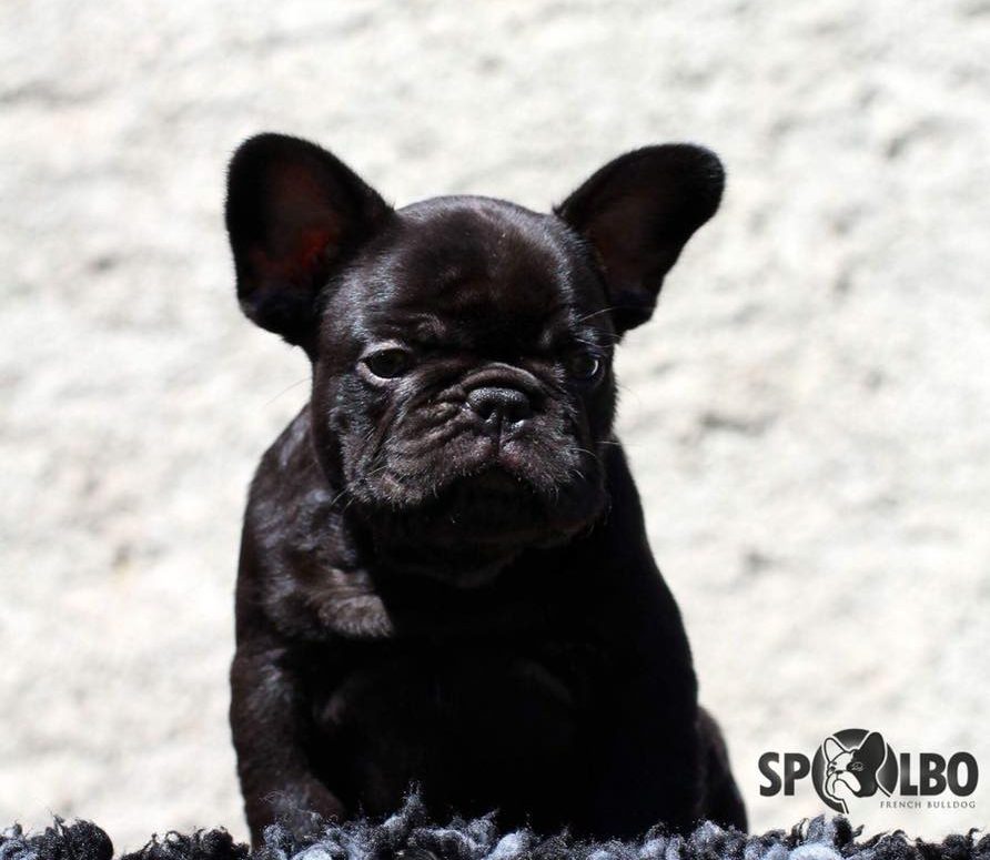Основными окрасообразующими аллелями этого окраса являются доминантные аллели В/- D/- Em(E)/- K/-, либо a/a B/- D/- Em(E)/- K/-(kbr/-, ky/ky). Черные собаки разных генотипов практически не отличаются друг от друга, поэтому определить их генотипы возможно только при помощи молекулярно-генетического анализа. Для французского бульдога характерно наличие рецессивного сплошного окраса. Данных, свидетельствующих о наличии доминантного аллеля К, пока нет.