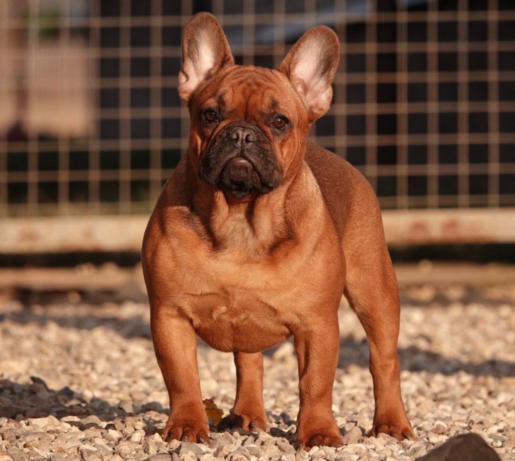 Согласно стандарту у французских бульдогов допустимы все оттенки палевого окраса. Однако в некоторых версиях стандарта отдельные варианты рыжего считаются нежелательными, это, например, красный, тяготеющий к бронзовому, или соболиный окрас с излишним затемнением на спине.