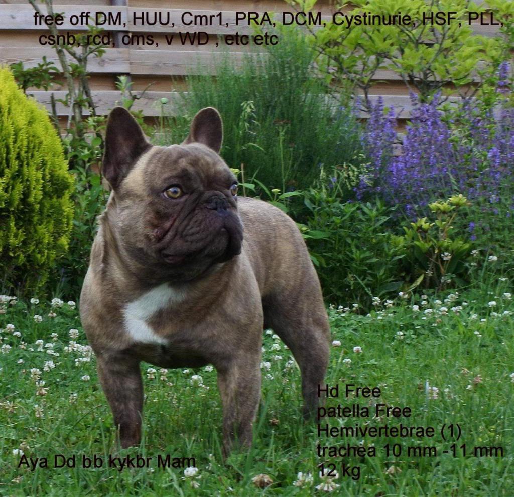 Тигровые и палевые французские бульдоги могут быть гетерозиготными носителями целого ряда генов, обусловливающих возникновение окрасов, нестандартных для породы. К таковым могут быть отнесены кремовый, подпалый, черный, коричневый и голубой окрасы. Поэтому заводчикам, желающим разводить бульдогов только стандартных окрасов, можно настоятельно рекомендовать тестировать будущих производителей на наличие аллелей a, at, b, co, d, e.