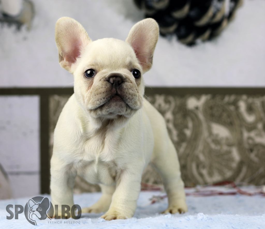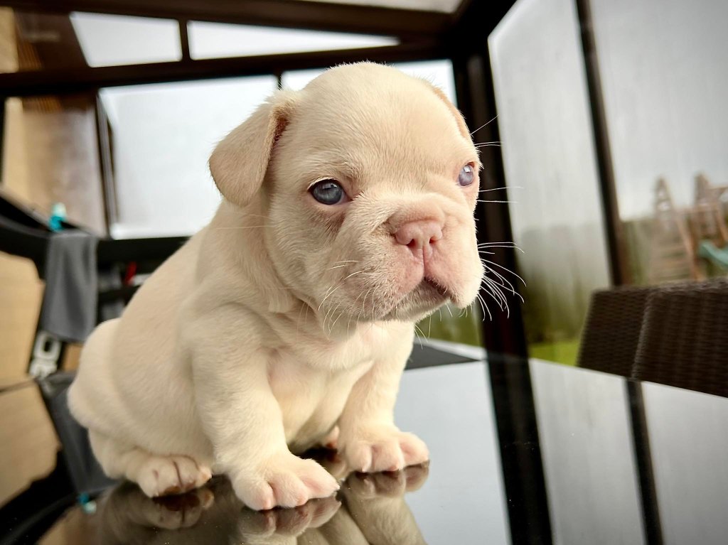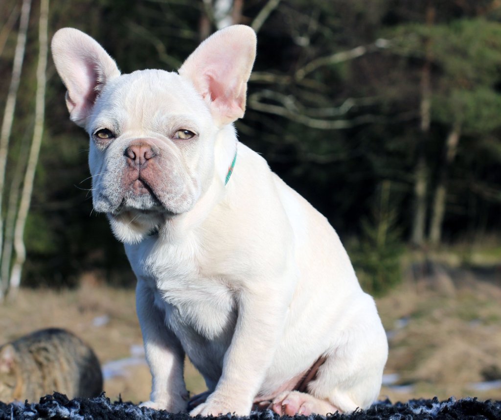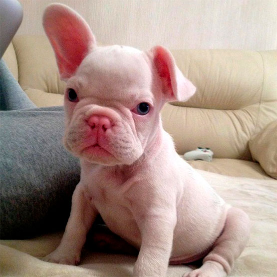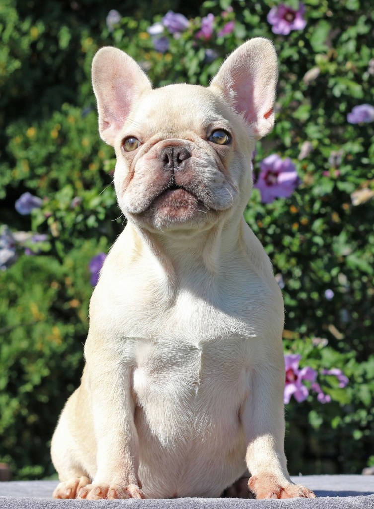 Весьма часто кремовый окрас французских бульдогов бывает сильно осветлен. Подобное осветление происходит под воздействием осветляющих факторов, влияющих на синтез феомеланина, о которых было сказано выше. Кремовый окрас французских бульдогов считается стандартным в Америке, однако он не признан FCI.