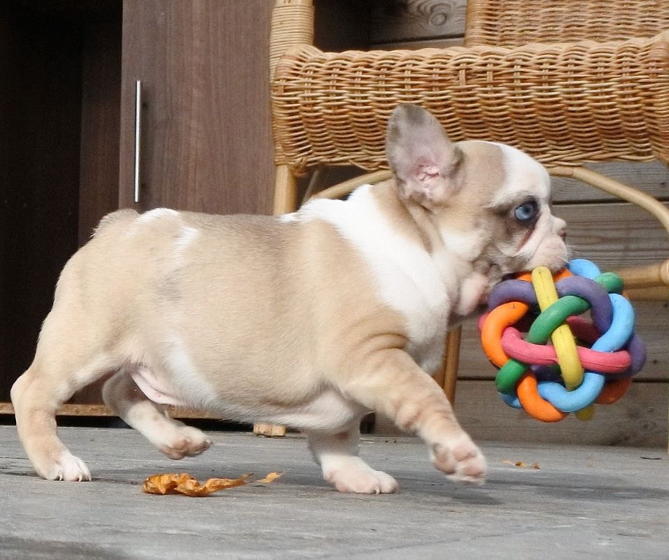 е – препятствует распространению эумеланина по всему корпусу собаки, обусловливает кремовый окрас французского бульдога.