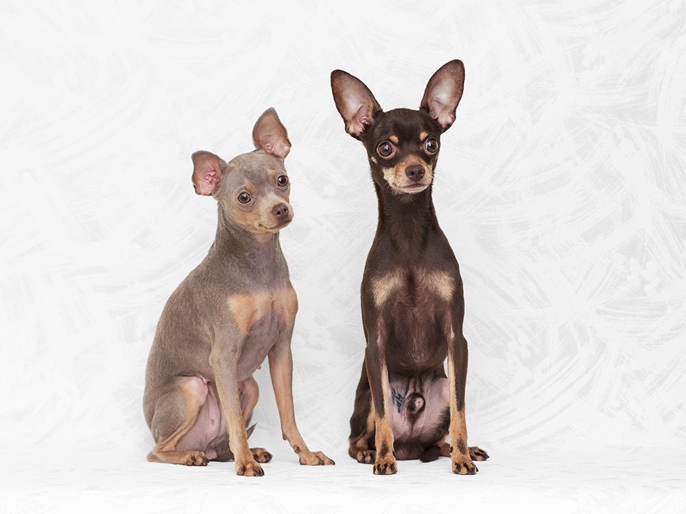 Часто при этом окрасе нос и глаза также бывают осветленными. Обратите внимание на цвет мочки носа: черная мочка носа у рыжей чихуахуа с полной интенсивностью эумеланиновой пигментации справа (генотип D/- ) в сравнении с осветленной пигментацией у голубого щенка слева (d/d).
