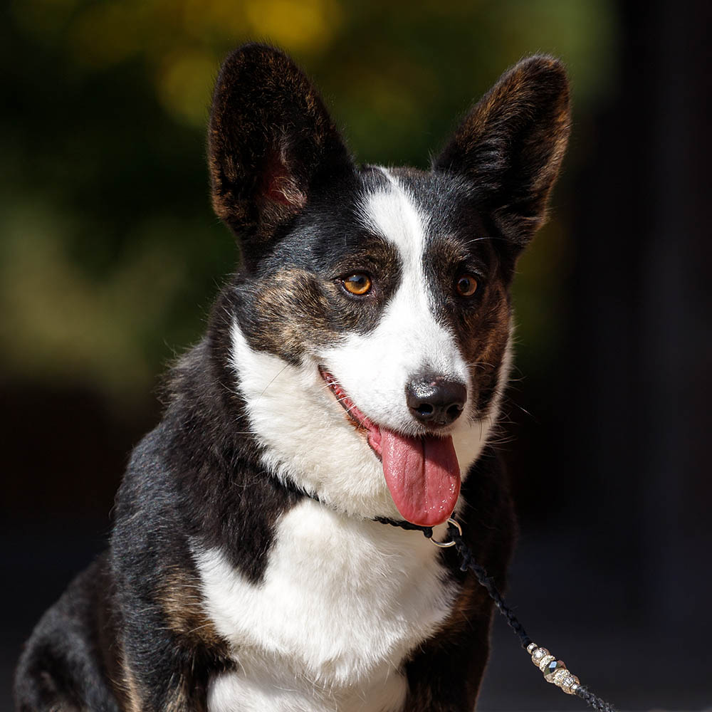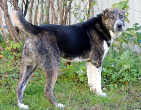 Менее привычно выглядит тигровый у собак с другими вариациями окрасов агути. Например, у подпалых и чепрачных по локусу агути (генотипы Kbr/- E/- at/at или Kbr/- E/- asa/-), тигровость проявляется в зонах подпала, как у корги и среднеазиатской овчарки на фото ниже. Такие окрасы иногда называют тигрово-подпалый и тигрово-чепрачный, соответственно.