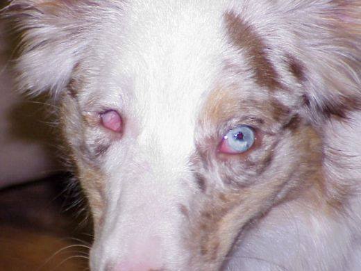Klinckmann, G., Koniszewski, G., Wegner, W. Light-microscope investigations on the retinae of dogs carrying the Merle factor Journal of Veterinary Medicine. Series A 33:674-788, 1986. Pubmed reference: 3099512.