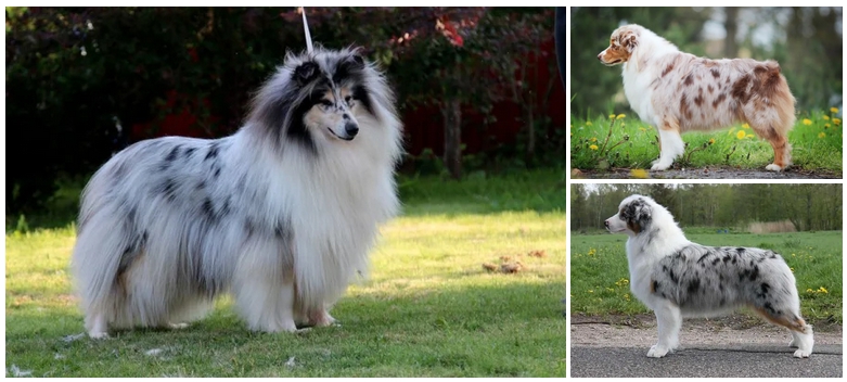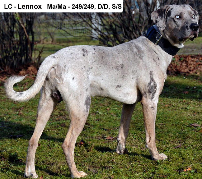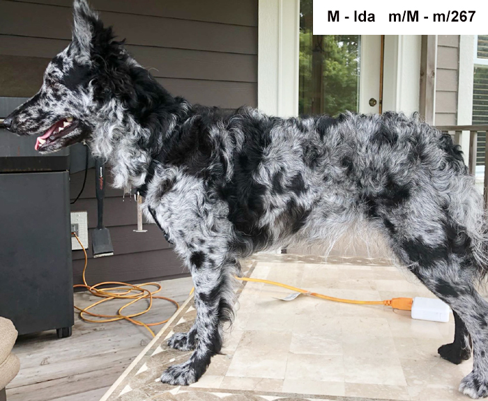 Ниже приведены примеры с собак различными генотипами по локусу M, каждая из которых обладает одним или двумя аллелями атипичного мрамора.