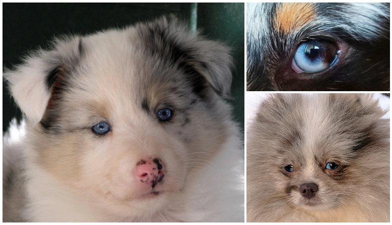 Тот самый, который сразу приходит на ум при упоминании локуса M. Ниже приведены фотографии с примерами проявления аллелей классического мрамора у гетерозиготных собак M/m. Можете изучить как этот аллель влияет на эумеланиновую и феомеланиновую пигментацию шерсти и на пигментацию глаз и кожи у собак разных пород и на фоне разных окрасов.