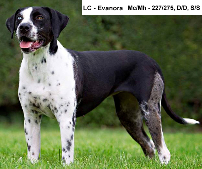 Ниже приведены примеры собак с аллелем арлекинового мрамора и указаны их генотипы по локусу M.