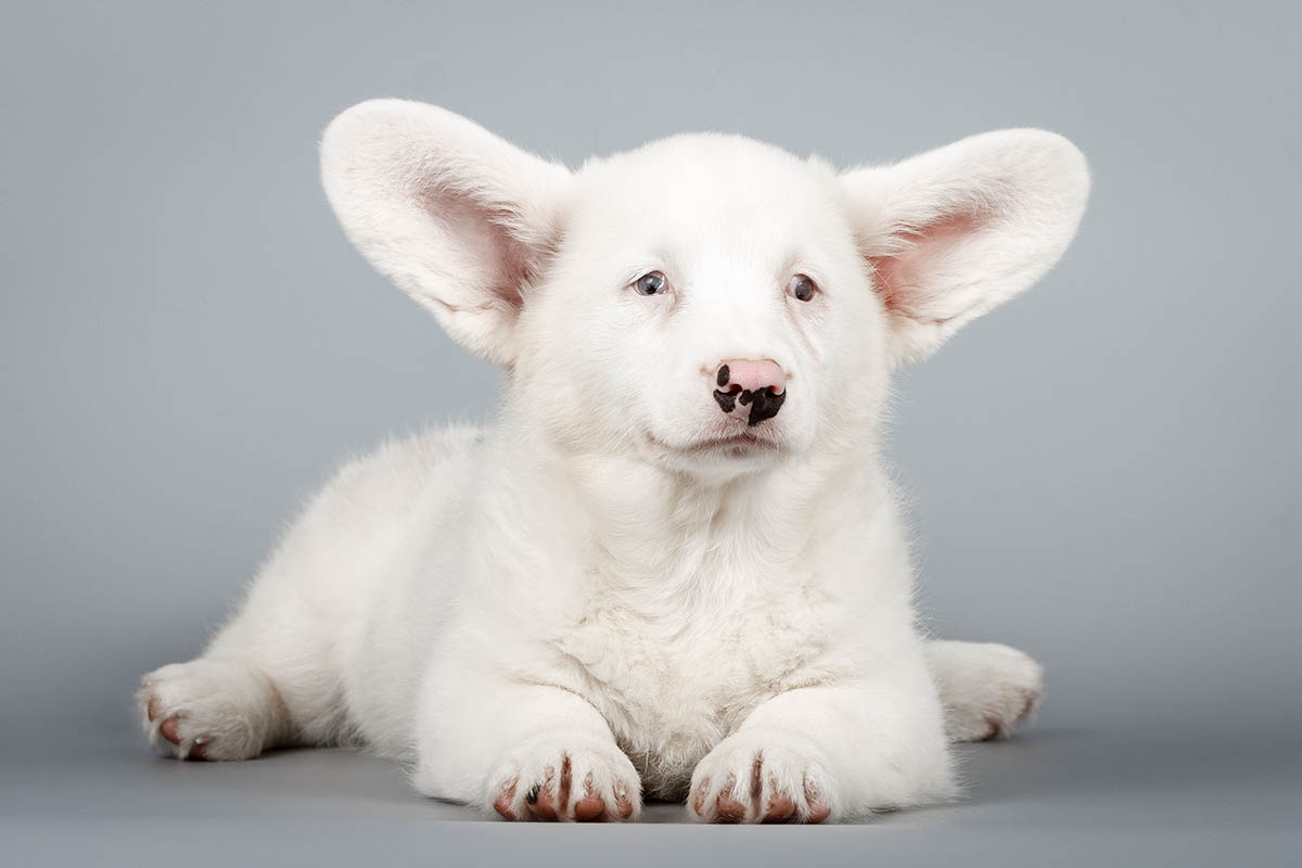 Белый окрас имеют и редко встречающиеся собаки-альбиносы, как на фотографиях ниже. Подробнее про альбинизм можно прочитать тут.